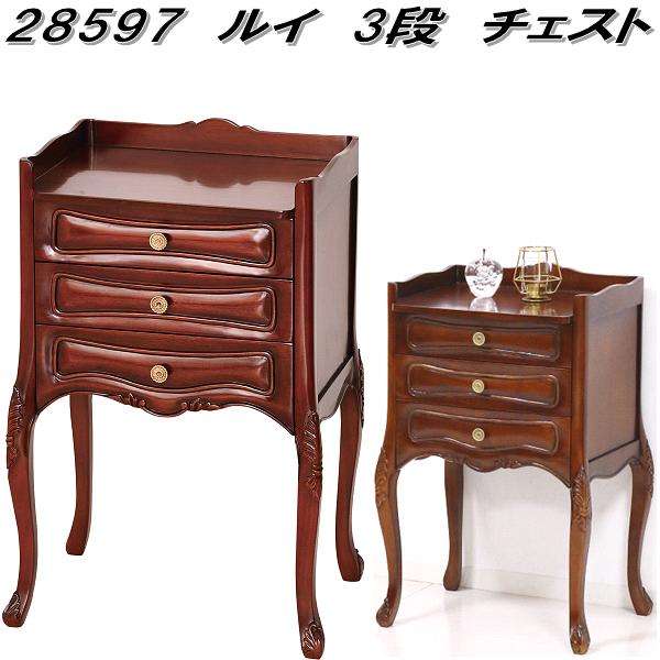 ■28597 ルイ 3段 チェスト マホガニーウッド仕様