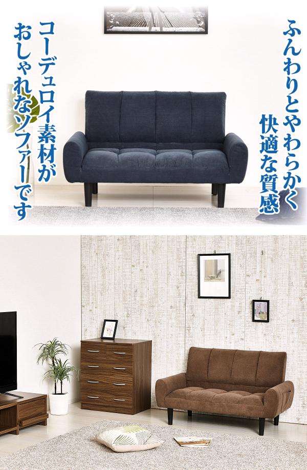クロシオ 28748 2P コーデュロイソファー ネイビーブルー