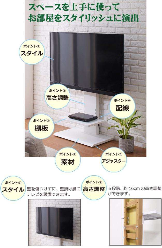 ◇壁を傷つけずに壁掛け風にテレビを設置できます。