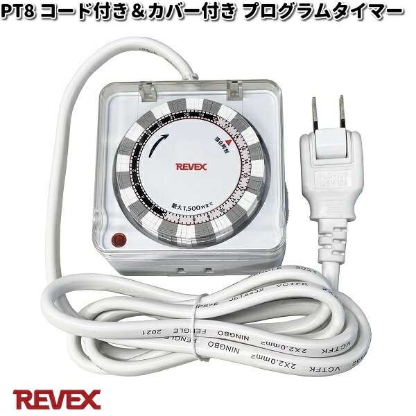 PT8 コード付き&カバー付き プログラムタイマー リーベックス【お取り寄せ商品】【REVEX コンセント タイマー】