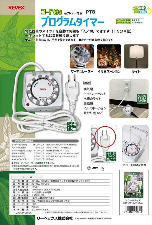 ■PT8 コード付き&カバー付き プログラムタイマー リーベックス