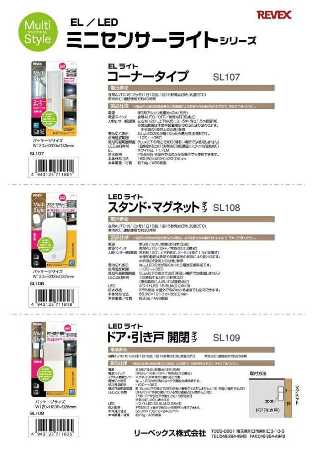 SL109 LEDライト ドア・引き戸 開閉タイプ リーベックス【お取り寄せ商品】【REVEX ライト センサーライト 】
