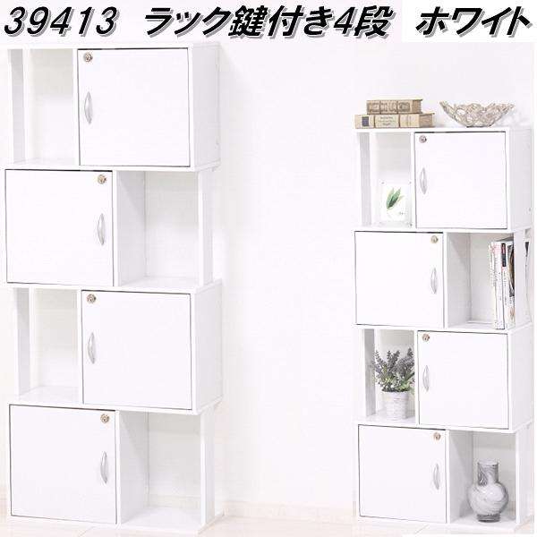 クロシオ 39413 ラック 鍵付き 4段 ホワイト【送料無料(北海道・沖縄・離島を除く)】【組立品】【メーカー直送】【同梱/代引不可】書棚 書庫 ブックシェルフ ラック チェスト ロッカー