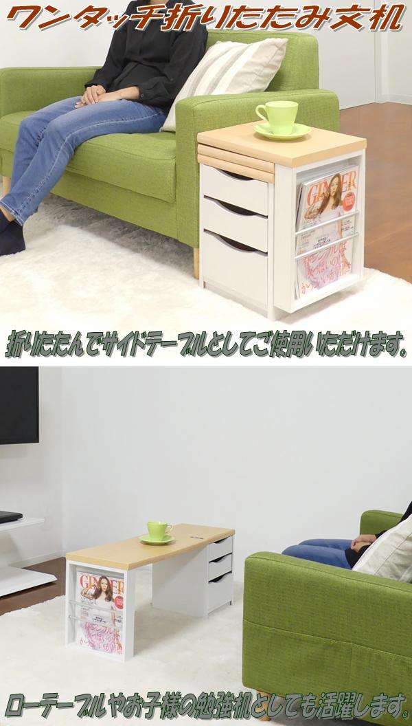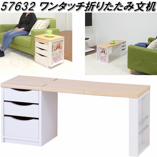 【送料無料(北海道・沖縄・離島を除く)】クロシオ 57632 ワンタッチ折りたたみ文机 ホワイト【完成品】【メーカー直送】【同梱/代引不可】【パソコンデスク 机 書斎 勉強机 サイドテーブル チェスト】