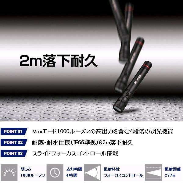 Maxモード1000ルーメンの高出力を含む4段階の調光機能