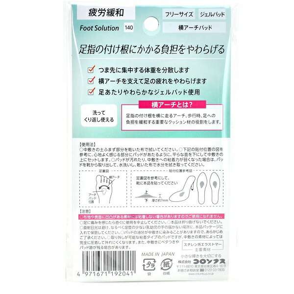 【ネコポス対応品】COLUMBUS コロンブス フットソリューション 横アーチパッド 2枚入(1足分)女性用【お取り寄せ製品】【靴ずれ予防・腰痛・膝痛・フィッティング】