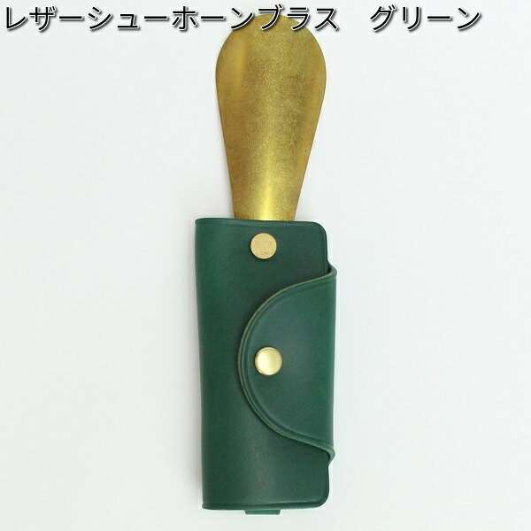 【ネコポス対応品】COLUMBUS コロンブス レザーシューホーンブラス グリーン 靴べら【お取り寄せ製品】