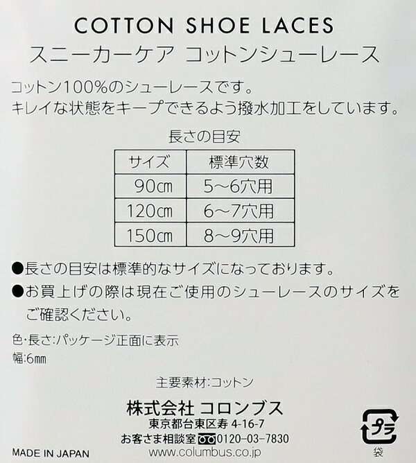 COLUMBUS コロンブス 靴ひも 靴紐 紐 ひも シューレース スニーカーケア スニーカー 補修 メンテナンス 予備 撥水 撥水加工 撥水性 4971671193819 4971671193840 4971671193789 4971671193826 4971671193857 4971671193796 4971671193833 4971671193864 4971671193802