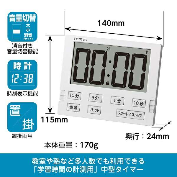 ●教室や塾など多人数でも利用できる「学習時間の計測用」中型タイマー