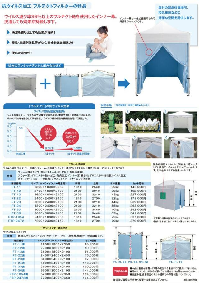 【フルセット簡単テント】抗ウイルス加工フルテクト地インナー幕付使用。