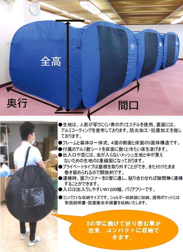震災 災害 防災 水害 避難 避難所用 プライベート 空間 ワンタッチ 間仕切り テント 体育館 公民館 避難場所 設営 ルーム