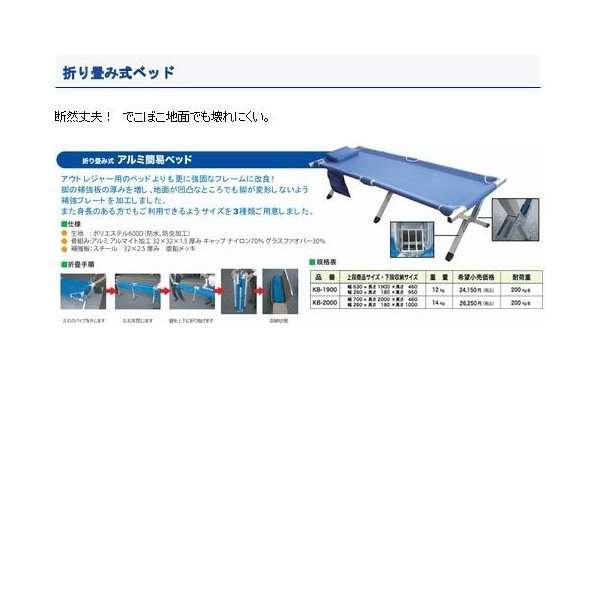 Mr Quick ミスタークイックKB-2000 折り畳み式 アルミ簡易ベッド 耐荷重200kgまで[幅700×長さ2000×高さ460mm]【メーカー直送品】【同梱/代引き不可】