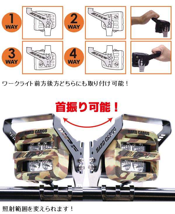 ◇"HARD CARGO" "IPF"のロゴ入りブラケット装着でワークライトを自在にコントロール!