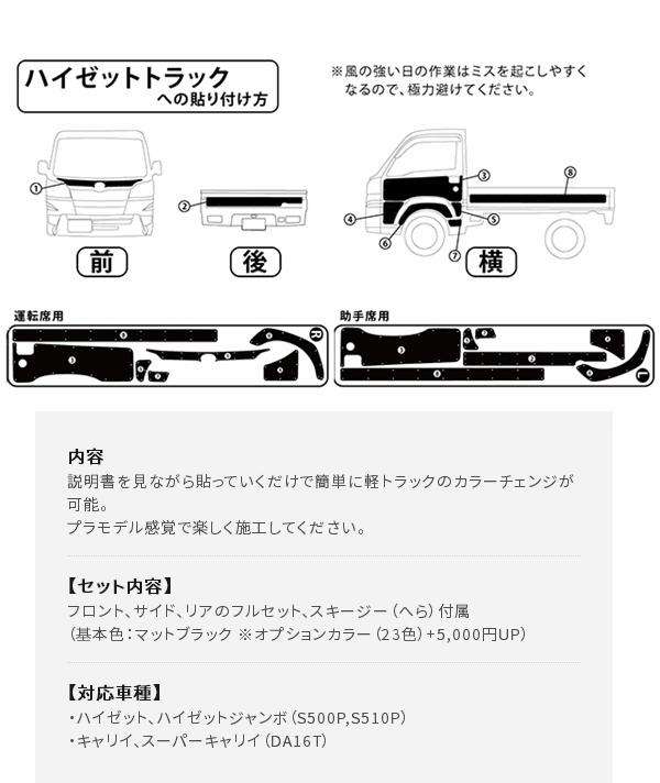 ●説明書を見ながら貼っていくだけで簡単に軽トラックのカラーチェンジが可能。