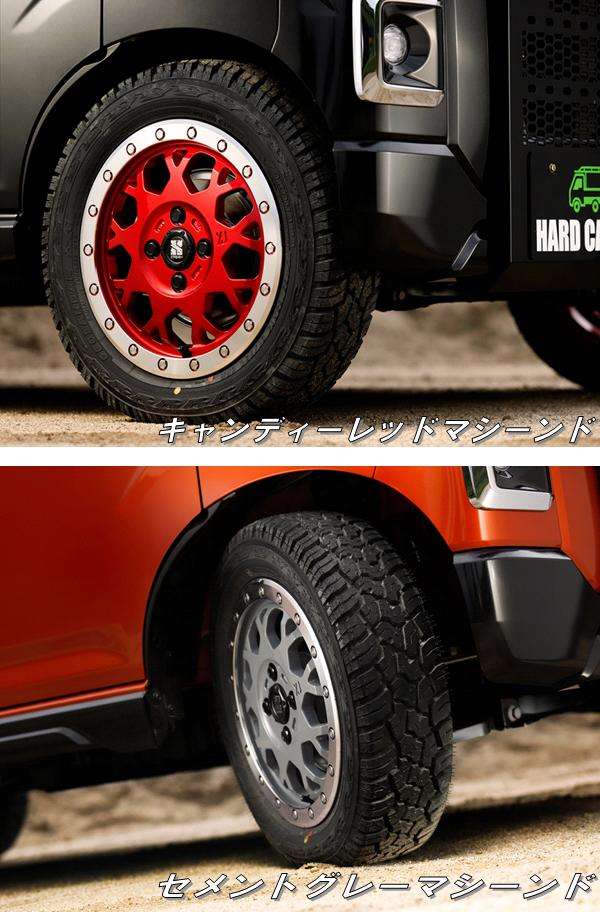 ◇2パターンのホイールとタイヤサイズがあり、どちらも軽トラ、軽ワゴンをワイルドにドレスアップできる製品です。