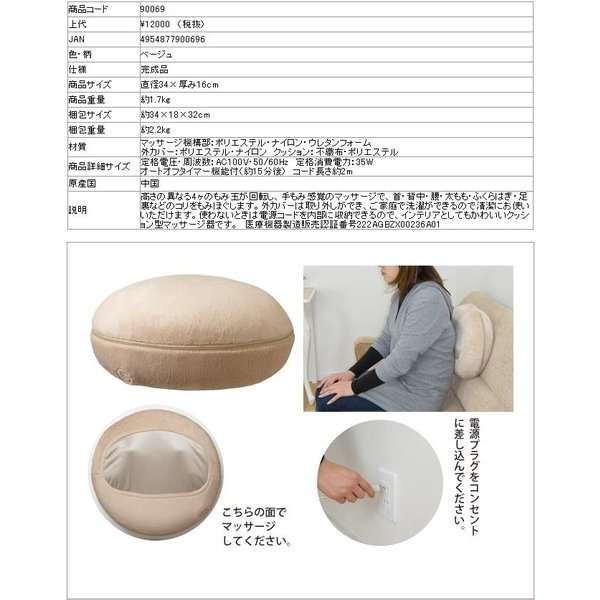【送料無料(北海道・沖縄・離島を除く)】クロシオ 90069 マッサージクッション プチシフォン ベージュ【医療機器】【メーカー直送】【同梱/代引不可】【マッサージ器】