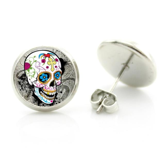 カラフルなドクロがかっこいいドクロのカボーションピアス。