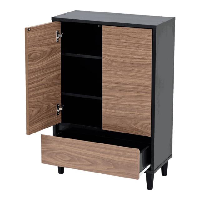 JKプラン 6デザインキャビネット リビングチェスト FSI-0005-BKBR ブラック×ブラウン おしゃれ キャビネット 引き出し リビングボード 北欧 扉付き チェストラック 木製 薄型 コンパクト 脚付き ラック 3段 幅60cm 高さ90cm