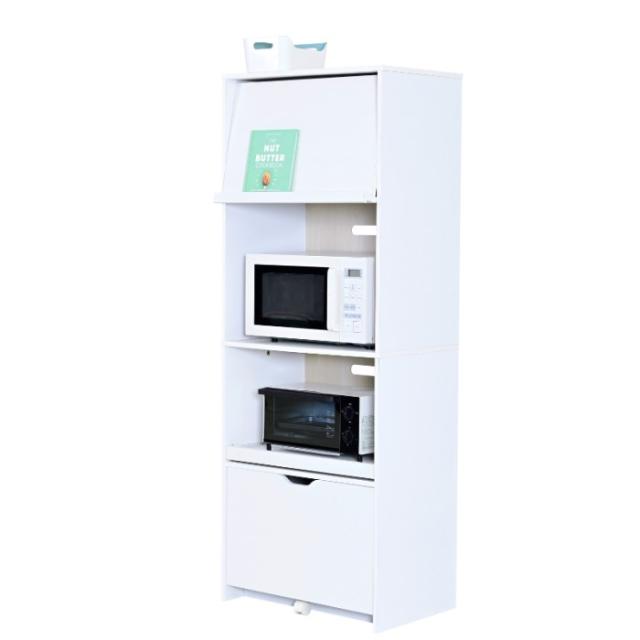 JKプラン キッチン収納 レンジ台 幅60 レンジボード FKC-0008-WHNA ホワイト×ナチュラル 家電ラック キッチンボード 食器棚 キャビネット キッチン収納 家電収納 炊飯器ラック レンジラック 白 黒 フラップ扉 スライド棚付