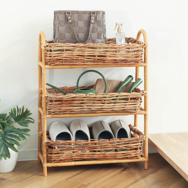 ラタンバスケット 3段 幅58cm AROROG 籐 ラタン 軽量 おしゃれ ( 収納ラック ランドリー収納 洗面所収納 リビング収納 玄関収納 キッチン収納 脱衣所 収納 棚 洗面所 ランドリーラック コンパクト 省スペース スリム )
