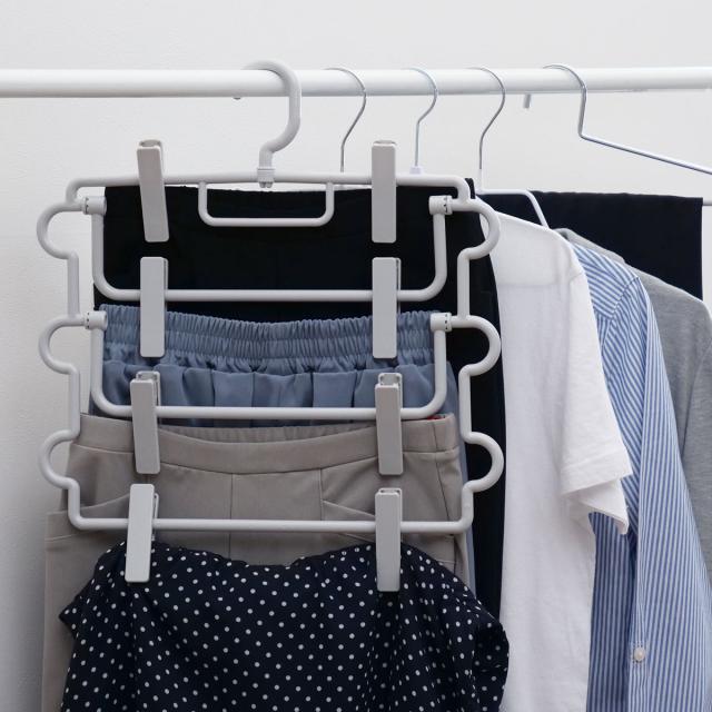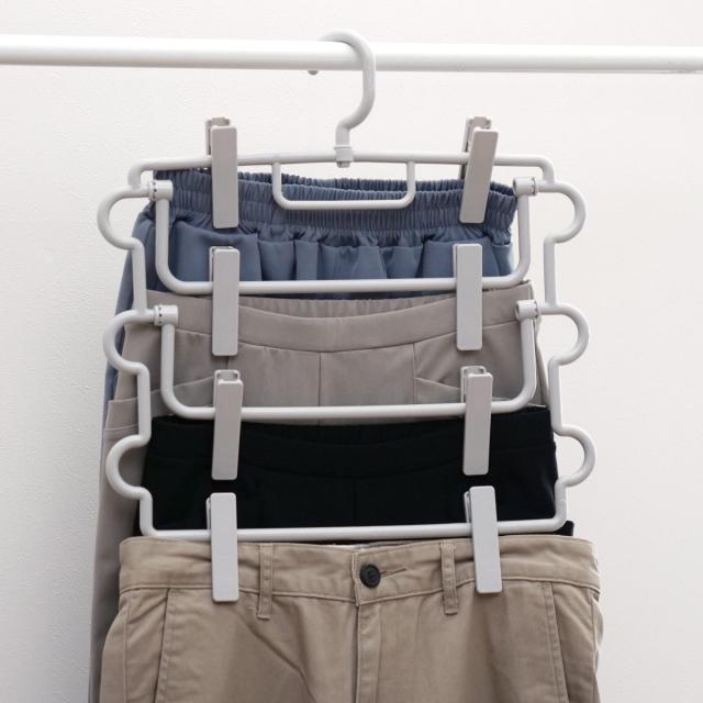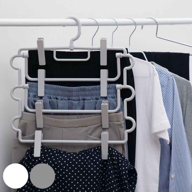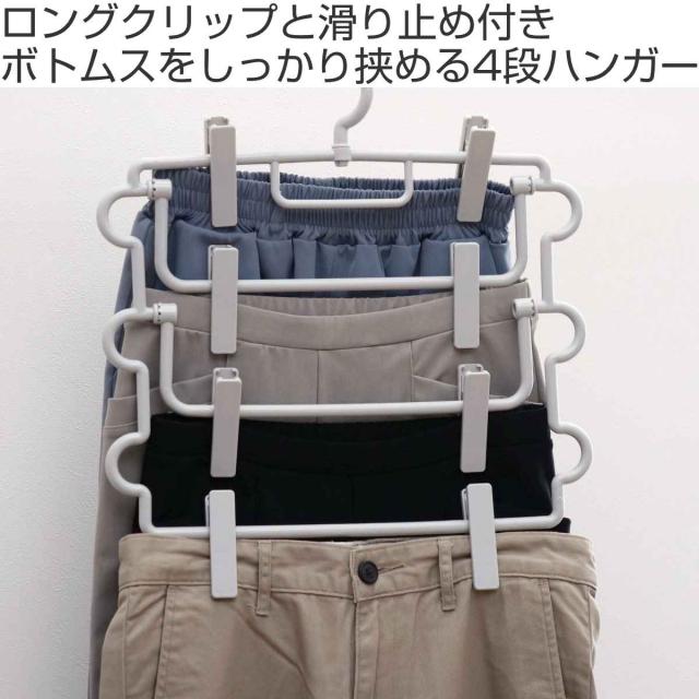 ハンガー スラックス モノクローゼット ボトムスクリップ 4段 ( クリップ 衣類収納 洋服ハンガー 連結 滑り止め 日本製 4連 衣類 収納用品 すべり止め 収納 シンプル ホワイト グレー )
