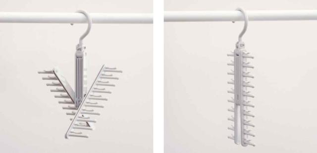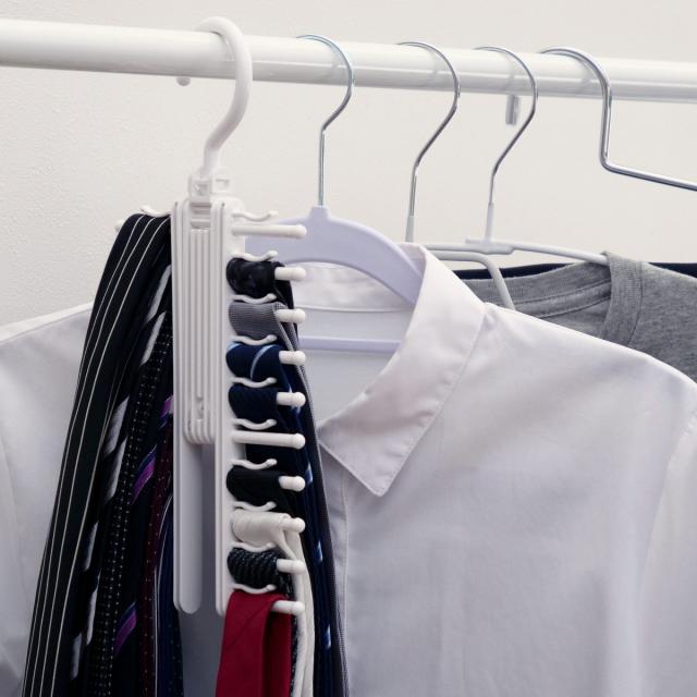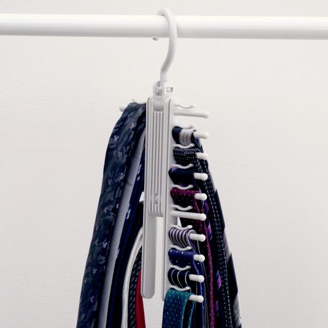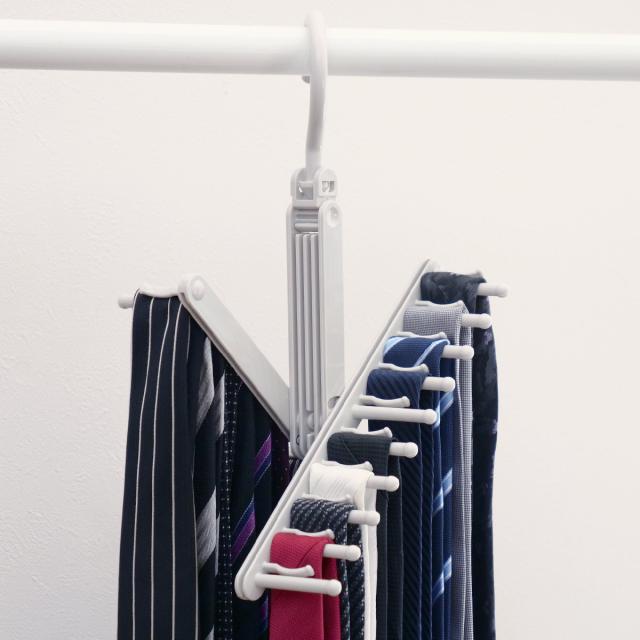 クロスした状態はネクタイが見やすく取り出しやすいです。たたむとクローゼット内でかさばらずコンパクトになるのでスッキリ収納できます。