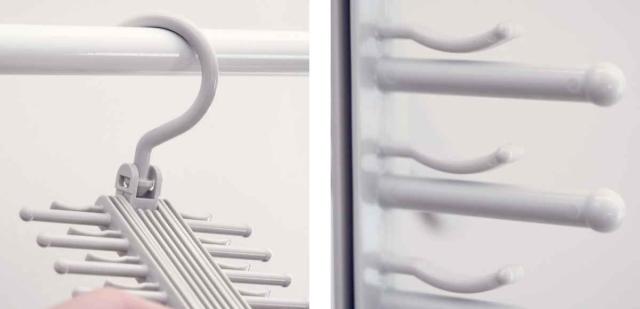 | 360度回転フック 回転フックをクルッとまわすと左右が逆転するので季節ごとに分別しやすいです。 | クリップ付き ネクタイをクリップで挟めます。 |