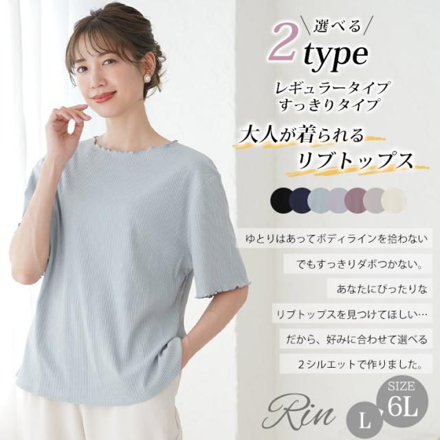 新作 大きいサイズ レディース トップス | 新色追加!! Rin 2タイプからシルエットが選べる! ゆったりなのにすっきり細魅せリブカットソートップス [860623] LL 3L 4L 5L 6L