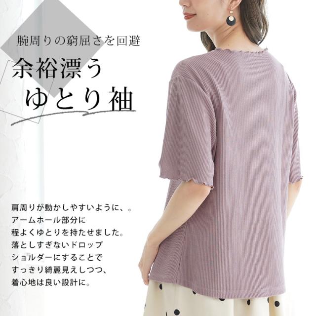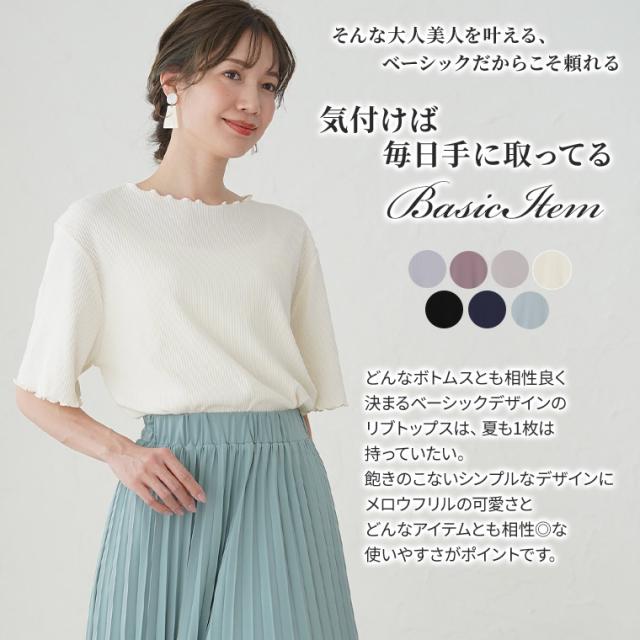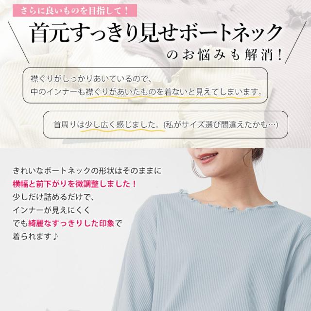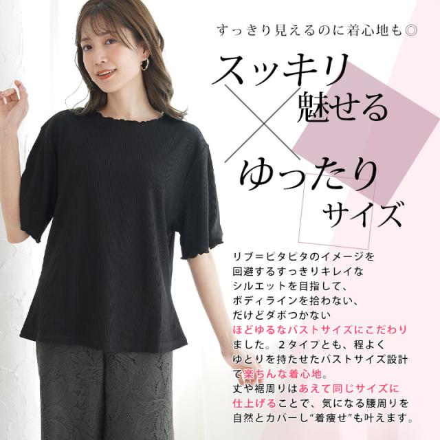 大人が着られるリブトップスシンプルだからのこだわり設計体型別コメント