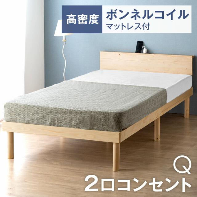 【本日P5%還元】 ベッド マットレス付き クイーン 宮棚&2口コンセント すのこベッド クイーンベット マットレス付き ベッドフレーム ベッド ボンネルコイルマットレス スプリングマットレス ボンネルマットレスフレーム おしゃれ クイーンベッド