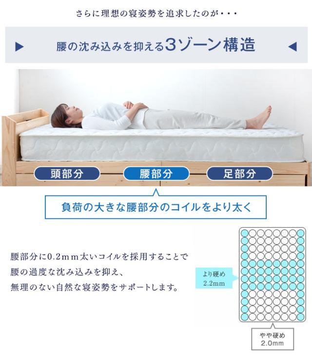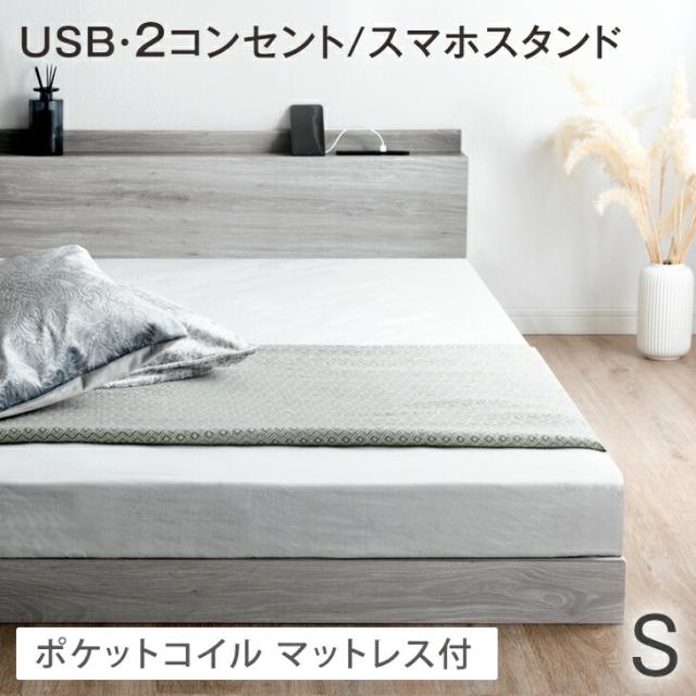 【本日P5%還元】 ベッド マットレス付き シングルベッド マットレス付 シングル 2口コンセント付き宮棚 ローベッド シングル 連結 フロアベッド ポケットコイルマットレス 木製 マットレスセット ベッドフレーム ベットフレーム 連結ベッド