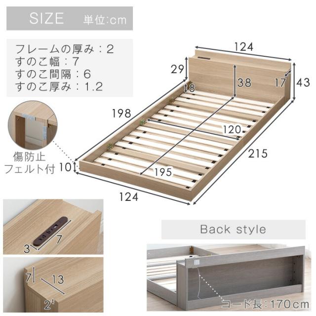 ベッド マットレス付き USB・2コンセント&スマホスタンド付 マットレス付 フレーム 宮棚付き すのこベット ローベット セミダブルサイズ セミダブルベッド おしゃれ マット付き RV01