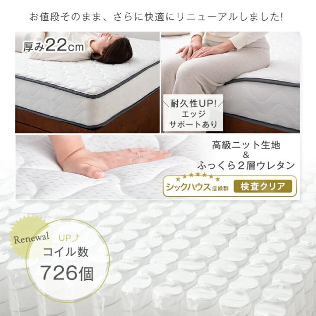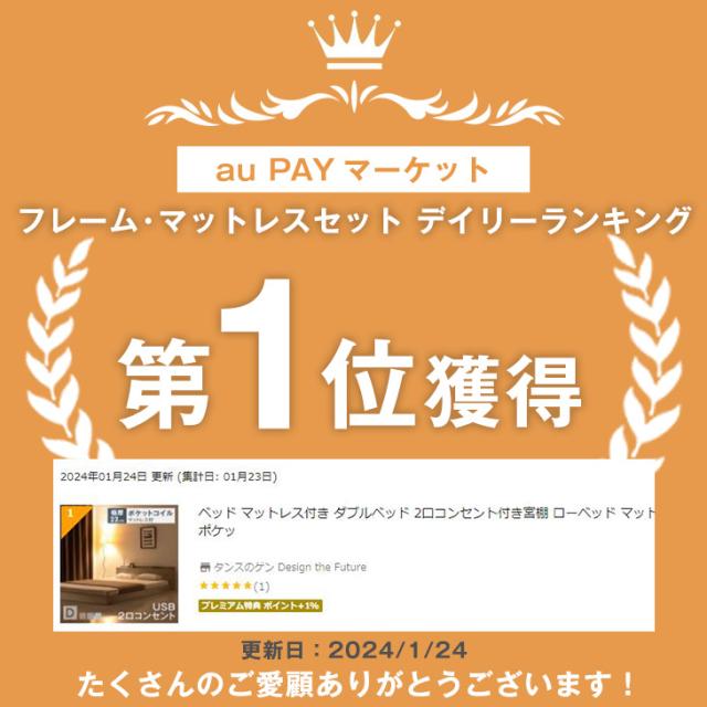 【本日P5%還元】 ローベッド マットレス付き ダブル ポケットコイル 極厚22cm 2口コンセント付き宮棚 ベッド マットレス付き フロアベッド ポケットコイルマットレス 木製 マットレスセット ダブルベッド マットレス付き