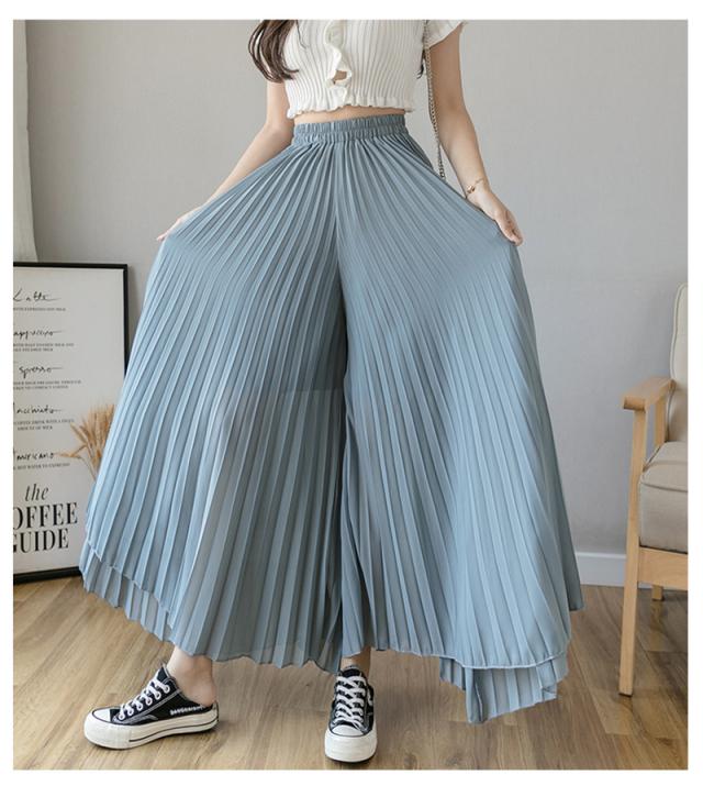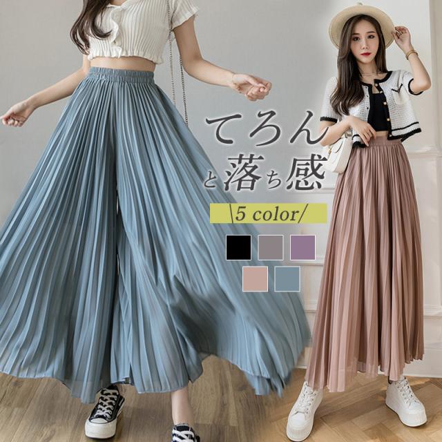 ワイドパンツ プリーツパンツ スカーチョ レディース ガウチョパンツ スカンツ ロング丈 ボトムス ウェストゴム 春 夏 秋 大き