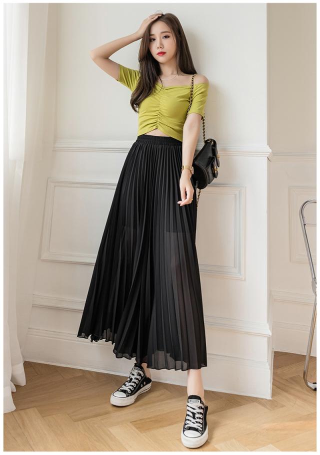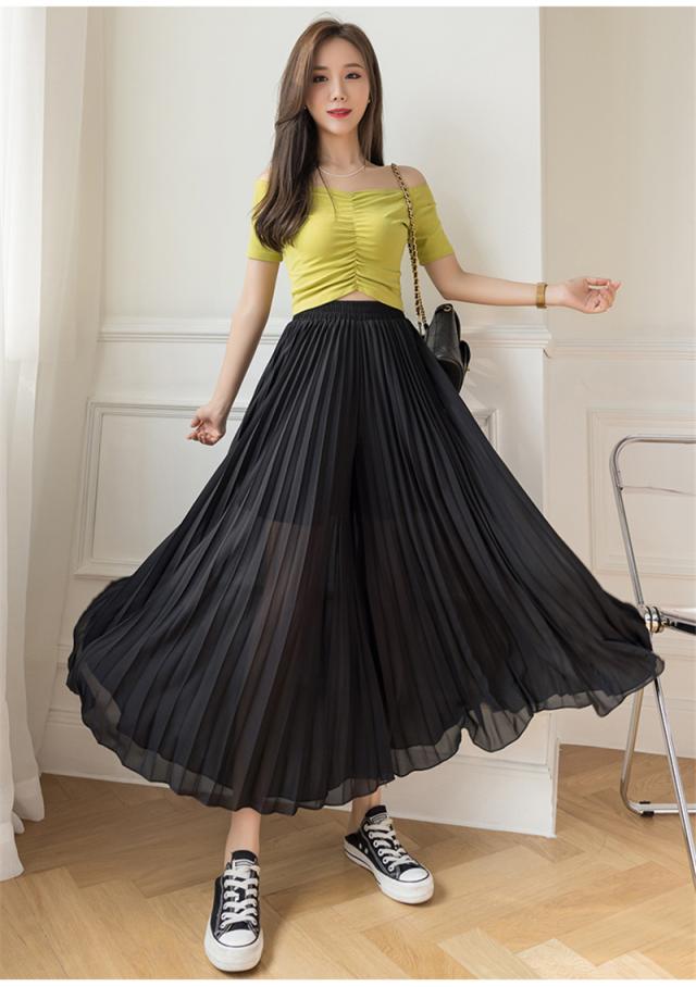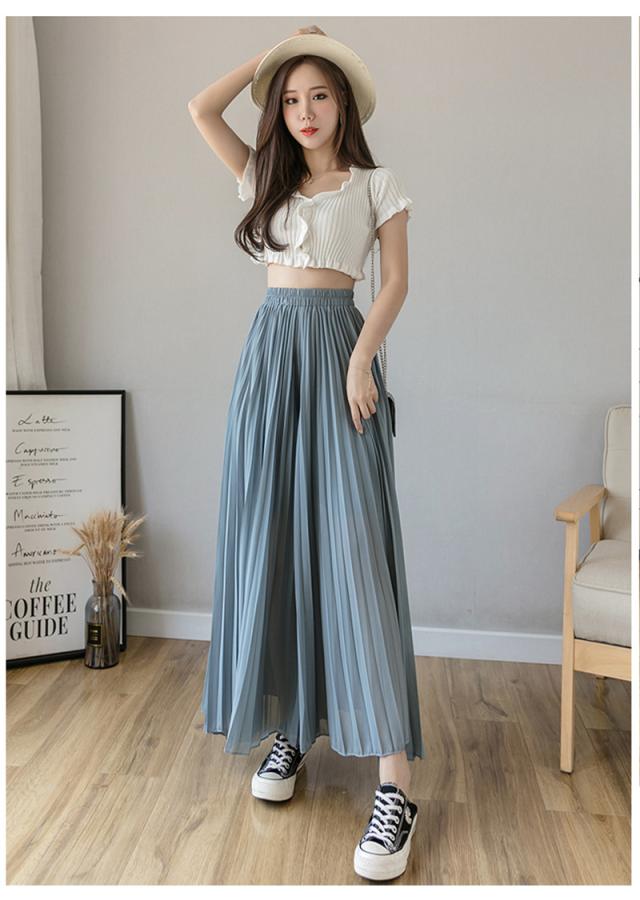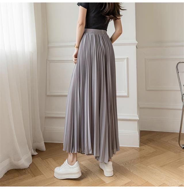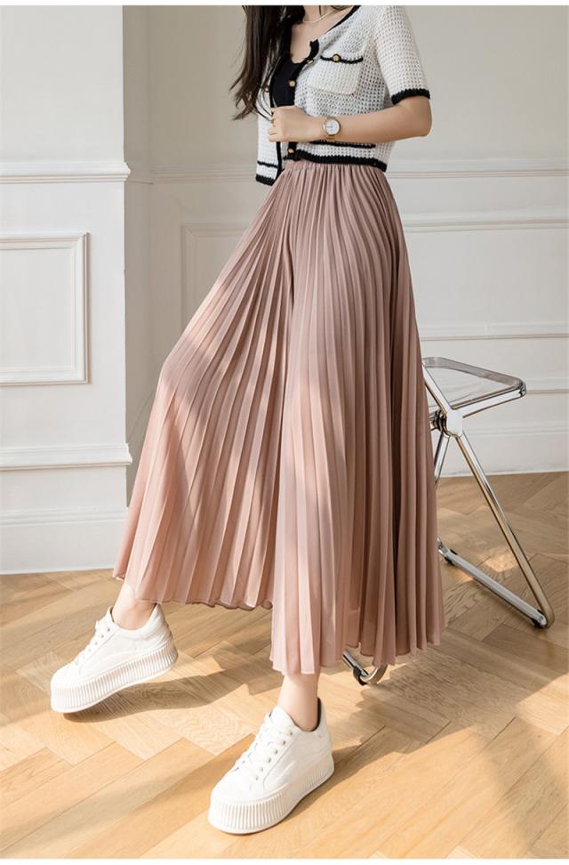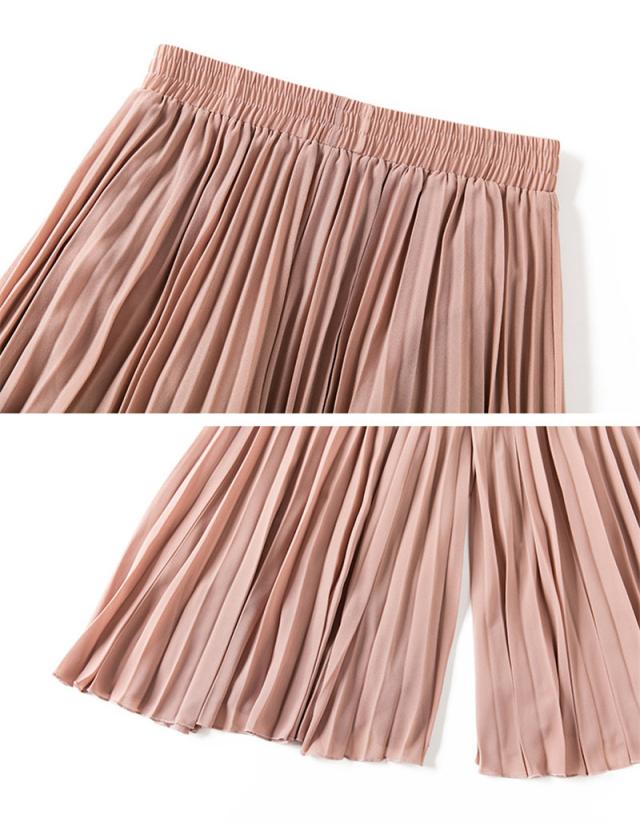 ☆細めのプリーツデザインは、縦のラインが強調され着やせ効果も期待できる美脚魅せアイテム。