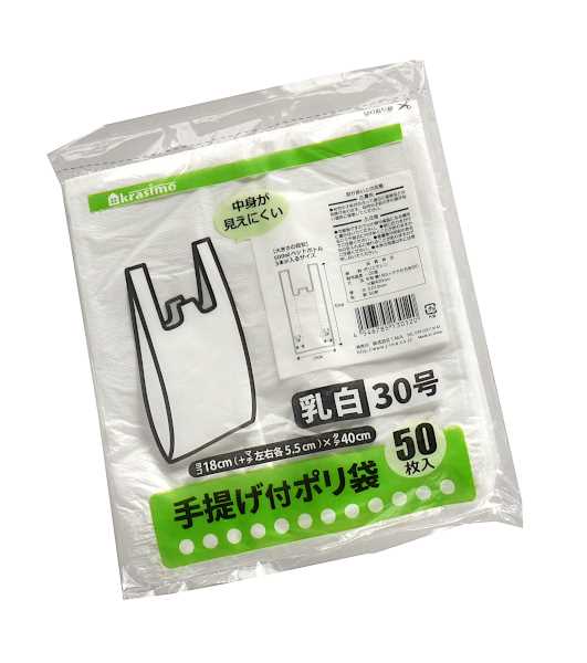 手提げ付ポリ袋 乳白 30号(18×40cm) 50枚入 (100円ショップ 100円均一 100均一 100均)