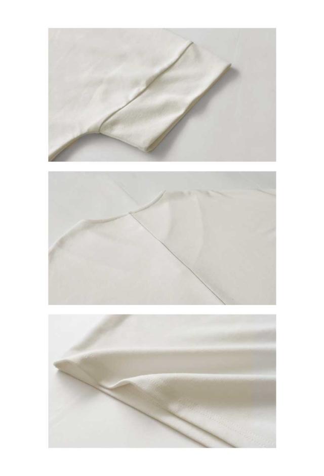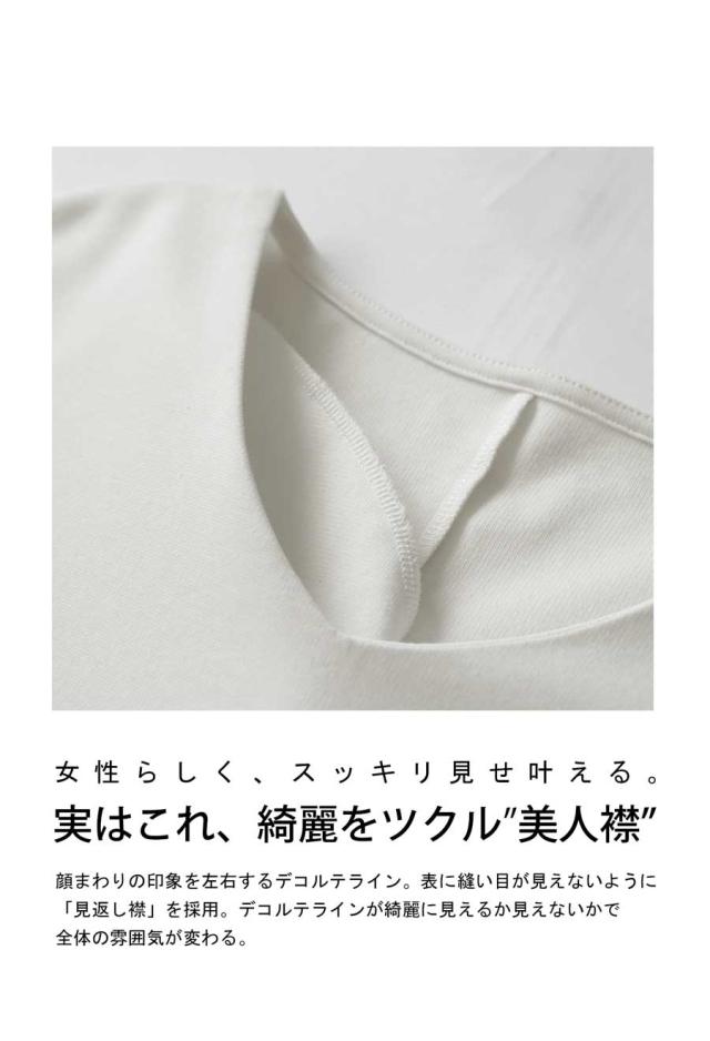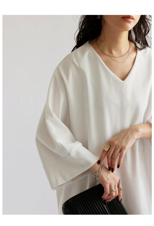 ・デコルテをすっきり魅せるVネックを採用。
