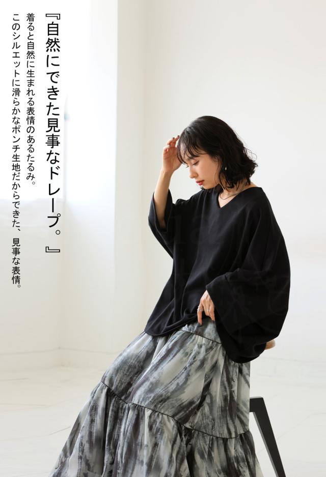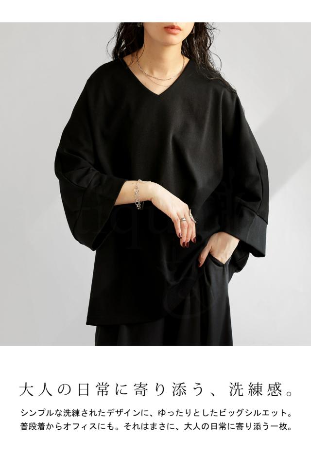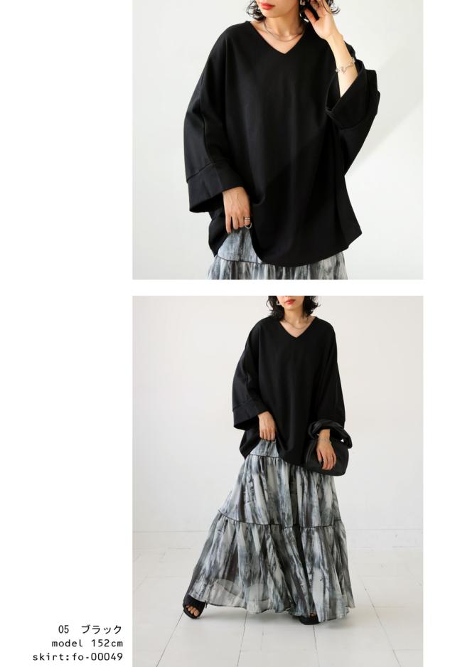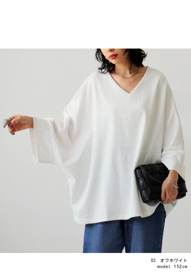 na-00423 Vネック プルオーバー ドルマン ドルマンスリーブ ドルマントップス ワイド ワイドトップス きれいめ ゆったり 見返し襟 シンプル オーバーサイズ 大きめ 大きいサイズ