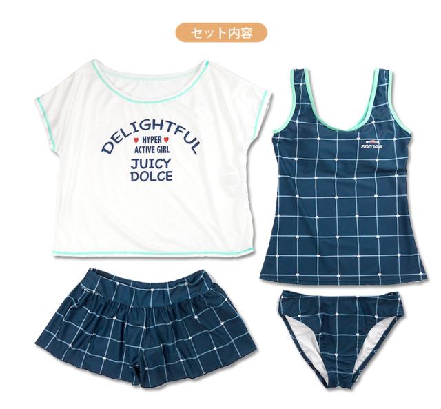 トップスとタンキニ上下、ショートパンツのお得な4点セットです。