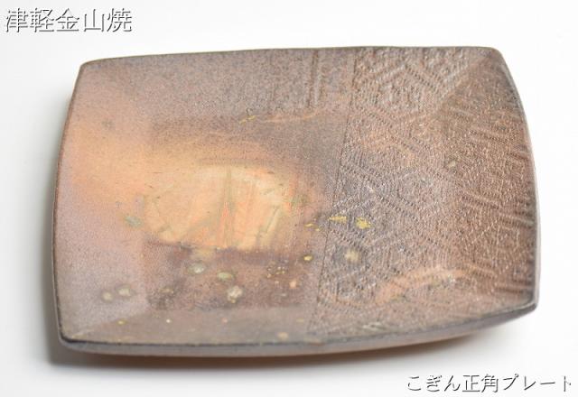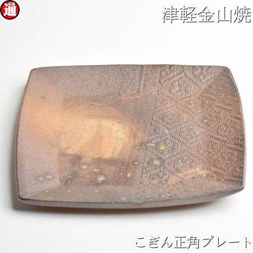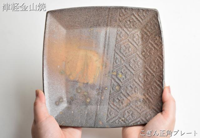 津軽金山焼 焼き締め こぎん正角プレート 陶器