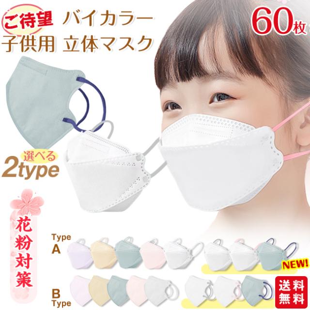 春新作 バイカラー マスク 子供 60枚 立体マスク 不織布マスク 息がしやすい バイカラー キッズ 子ども くすみカラー パステルカラー 3D ポイント消化 母の日