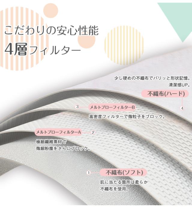生産時期によりマスクのデザイン・包装などが異なる場合がございます。マスクの性能には変わりはありません。