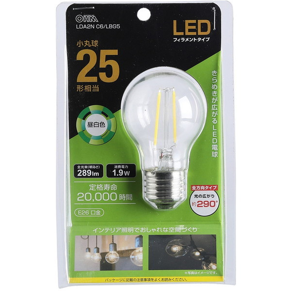 LDA2N C6/LBG5 オーム電機 [LEDフィラメント電球(E26口金・25形相当・小丸球・白昼色)]