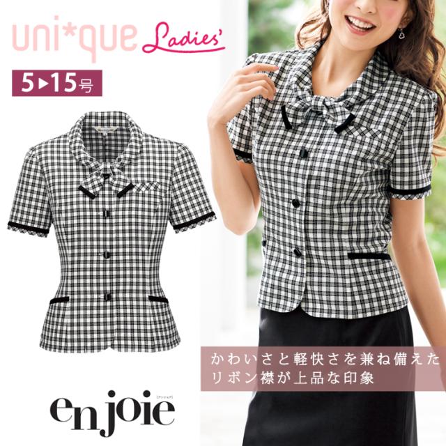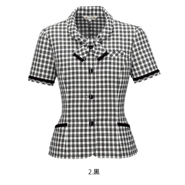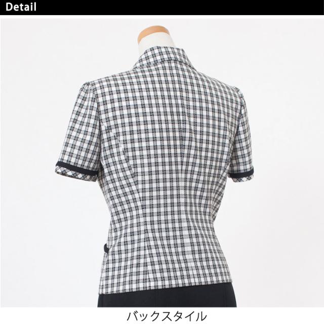 レディース 半袖 オーバーブラウス 春夏 チェック ライトジャケット オフィス ユニフォーム 制服 通勤 事務服 OL きれい きちんと ママ服 ジョア 26230