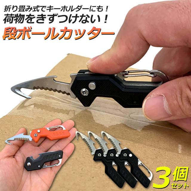 カッター 段ボール開封 カッター 3個セット フック型 ダンボールカッター フックカッター 段ボールの開梱 開封道具 おしゃれ 開閉式 開梱カッター アウトドア カラナビ付き キーホルダー ナイフ のこぎり 全長105mm