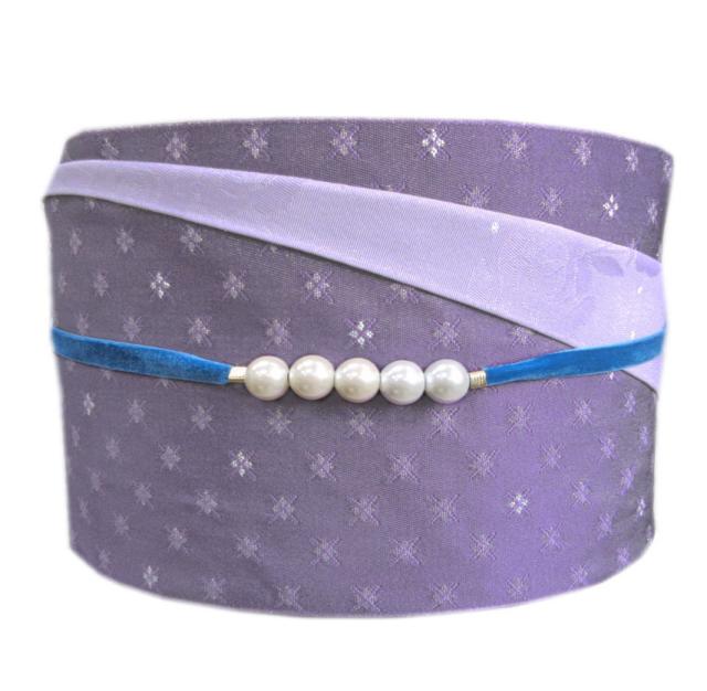 飾り紐 帯飾り 帯締め パール付き ベロア ブルー 濃青色 浴衣 ゆかた 振袖 成人式 着物 かざりひも 帯かざり