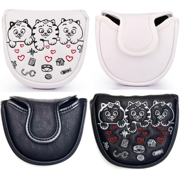 ゴルフ ヘッドカバー パターカバー マレット用 マグネット式 ハートネコ 黒 白