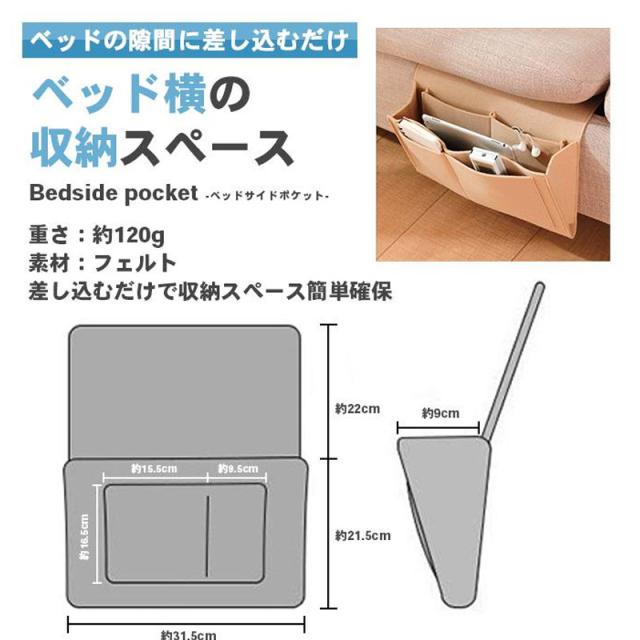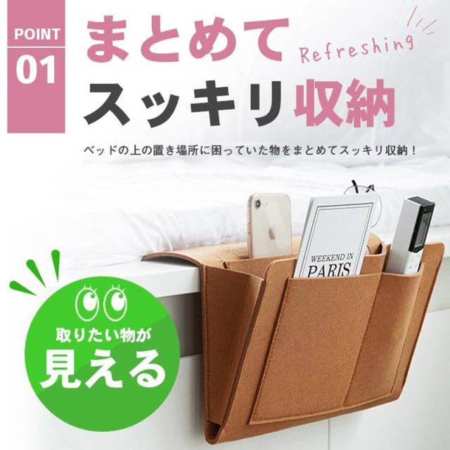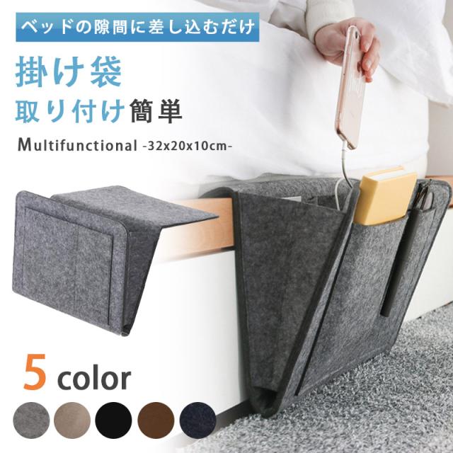 ベッドサイド 収納 ポケット 【全5色】 ソファサイド ベッド横 掛け袋 多機能 フェルト 雑貨整理 小物入れ 寝室