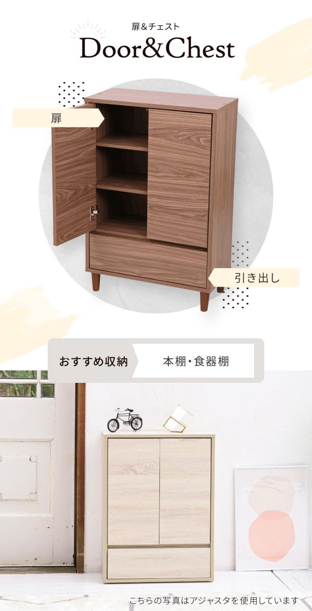 リビングチェスト おしゃれ キャビネット 引き出し リビングボード 北欧 扉付き チェストラック 木製 薄型 コンパクト 脚付き ラック 3段 幅60cm 高さ90cm 新生活 引越し 家具 沖縄 離島別途送料見積もり メーカー直送品 FSI-0005