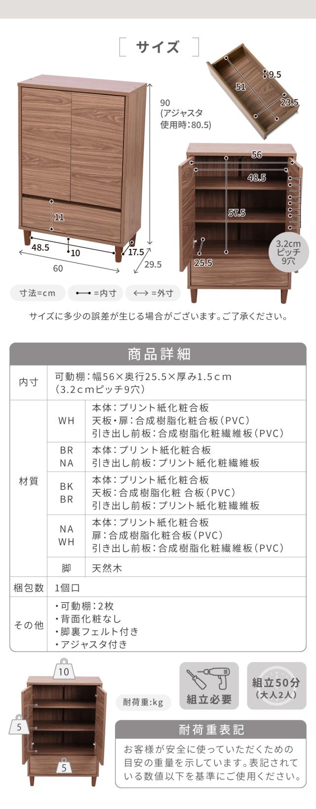 (扉内)幅48.5(有効56)×奥行25.5×高さ57.5cm